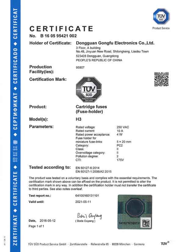 目前我們產(chǎn)品有:保險絲、保險絲座、汽車保險絲、汽車保險絲座、汽車保險絲盒及新能源汽車高,低壓熔斷器、充電樁熔斷器、綠色直流光伏熔斷器等,產(chǎn)品取得UL,cUL.TUV.CE.CQC等產(chǎn)品質(zhì)量認(rèn)證。